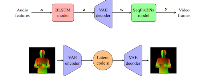 - The BLSTM model first associates extracted audio features x to intermediate latent codes z.