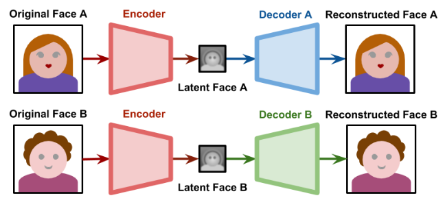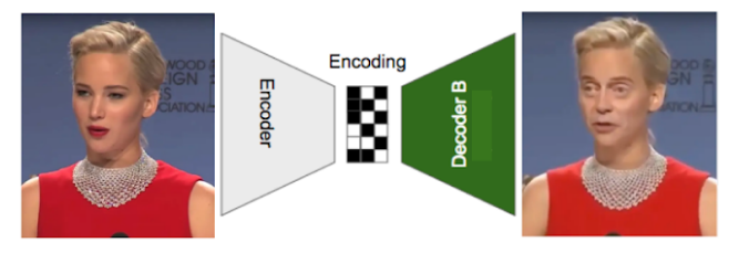 There are no formal or seminal papers on DeepFakes since they have not come out of any lab. Here’s an explanation behind the tech though. Let’s take the popular Jennifer Buscemi example. Say we have videos of both of them, Jennifer Lawrence and Steve Buscemi. We want to put Steve Buscemi’s face (Face B) onto Jennifer Lawrence’s Face (Face A). We have 2 autoencoders, one for each of them.