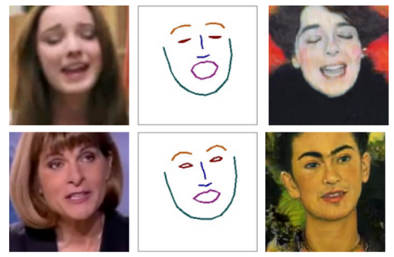 This popular paper presents a simple method for “do as I do” motion transfer: given a source video of a person dancing, they transfer that performance to a target after only a few minutes of the target subject performing standard moves. They approach this problem as video-to-video translation using pose as an intermediate representation. To transfer the motion, poses are extracted from the source subject and learned pose-to-appearance mappings are applied to generate the target subject.