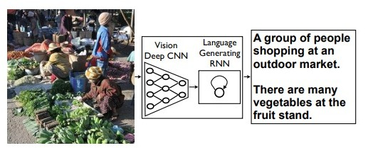Google’s Neural Image Caption Generator (NIC) is based on a network consisting of a vision CNN followed by a language-generating RNN. The model automatically views images and generates descriptions in plain English.