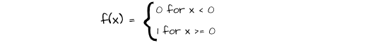 In the mathematical representation above, a threshold is set at zero such that any value below zero is assigned a value of 0 (not activated) and any value above zero is assigned a value of 1 (activated).