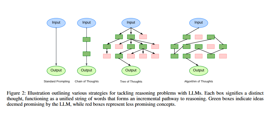 The Algorithm of Thought (AoT) is an innovative prompting technique that uses algorithmic reasoning paths to enhance the reasoning abilities of Large Language Models (LLMs). This technique incorporates the methodical and ordered nature of algorithmic approaches in an effort to simulate the layered exploration of ideas seen in human thinking.