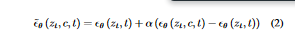 - ε is random noise added to make the generated images diverse and stochastic and εo comes from the generator network, and depends on zt, C, and t.