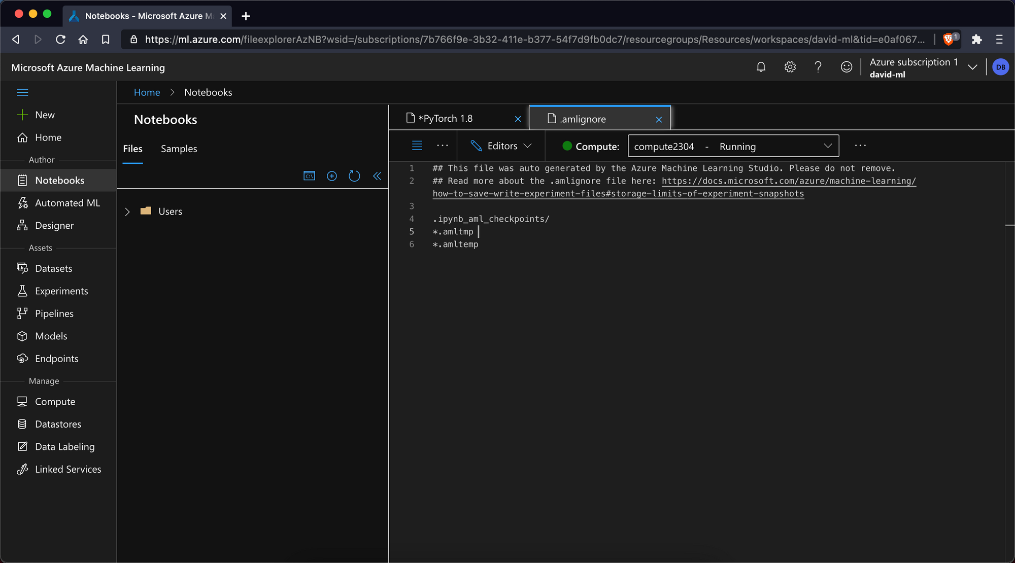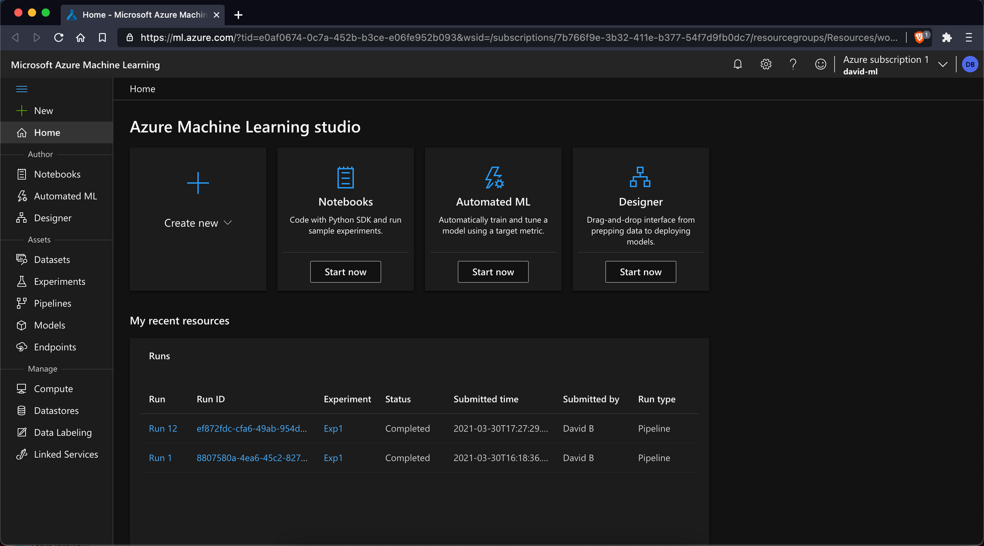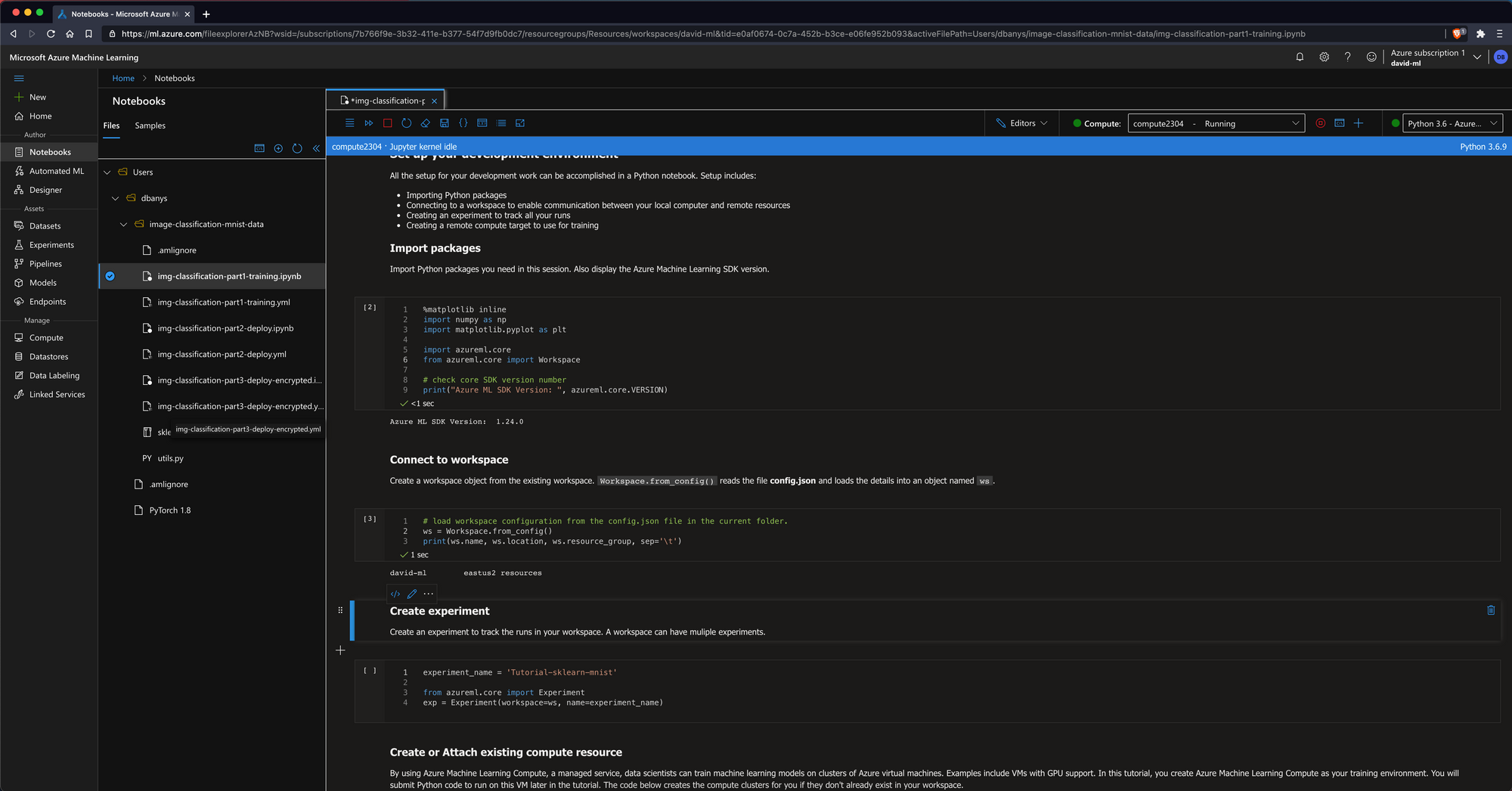 Getting the "lay of the land" in Azure is naturally more difficult than in Gradient due to the enterprise focus. This is nice if you need strict RBAC or compliance measures, but less nice if you're trying to start exploring in a notebook right away.