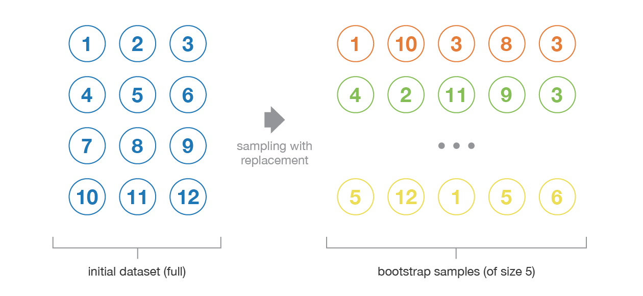 Bootstrapping is the process of generating bootstrapped samples from the given dataset. The samples are formulated by randomly drawing the data points with replacement.