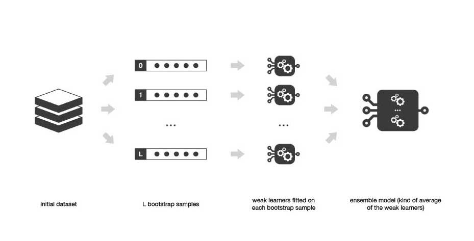 - Bootstrapping comprises the first step in Bagging process flow wherein the data is divided into randomized samples.