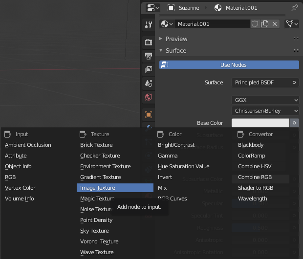 Click on the new button icon to create a new material. Once this new material is added, it is time to set the surface. We will stick to the default Principled BSDF Shader selection. There are several options available for this particular task, but we choose the Principled BSDF Shader because it combines multiple layers into a single easy-to-use node. While there are many other selections and parameters that you can set for performing the action of adding your textures, we will only focus on adding our desired background without changing any other attributes.