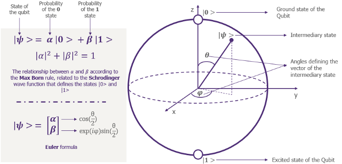 - The Bloch’s sphere, which is used to represent the state of a qubit, Mathematically