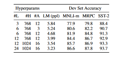 The researchers trained some BERT models with a differing number of layers, hidden units, and attention heads while otherwise using the same hyperparameters and training procedure.