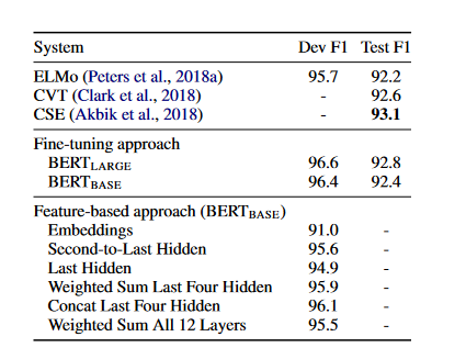 All of the BERT results provided up to this point have used the fine-tuning method. In this method, a basic classification layer is added to the pre-trained model, and then all of the parameters are jointly fine-tuned on a down-stream task. The feature-based technique in which fixed features are taken from a pre-trained model offers a few benefits: