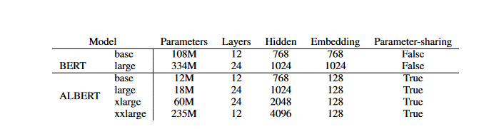 ALBERT: https://arxiv.org/pdf/1909.11942.pdf