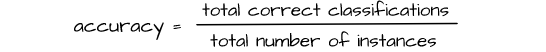 Perhaps the most popular of classification metrics, accuracy is the proportion of correctly classified instances of data to the total number of instances classified. It is typically a pointer to how well a model generalizes to data instances which it was trained on but in most cases it doesn't tell the whole story. It is measured on a scale of 0-100 or 0-1 (normalized).