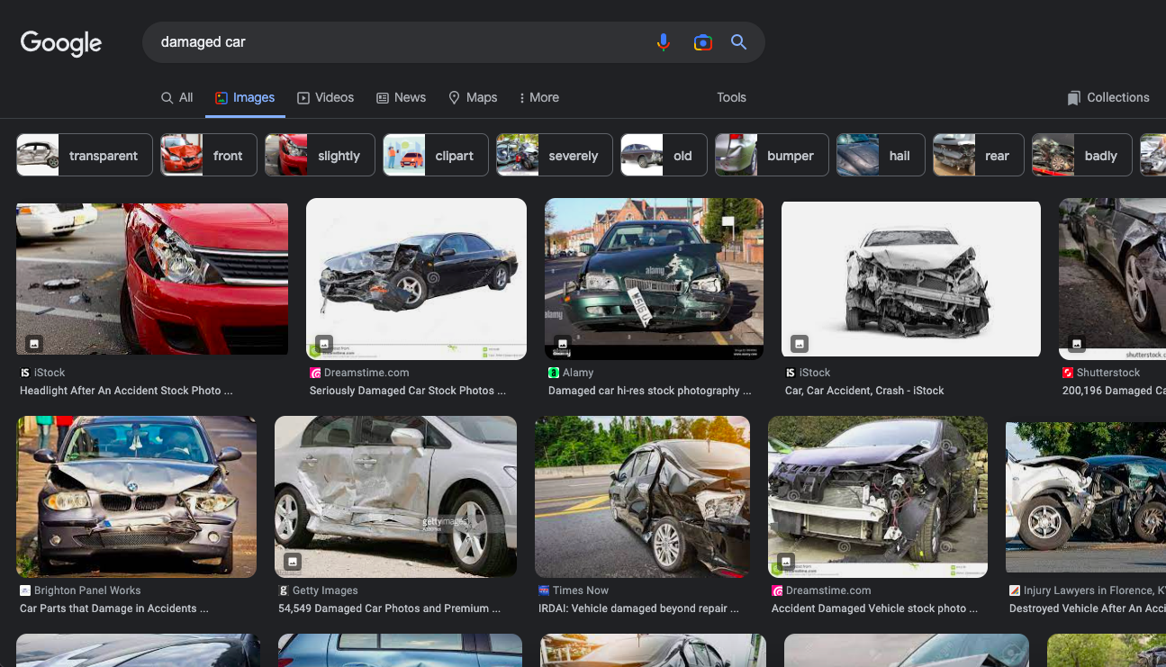 So you go to google images and type in "damaged car", and you'll get about thousands of results, which is more than enough for this problem statement.