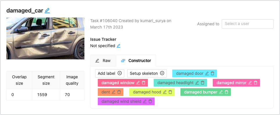 While creating a new task it will ask you to name the task and project. You can go ahead with any name of your choice. Add the custom labels that you are going to annotate the images with. In my case they were :