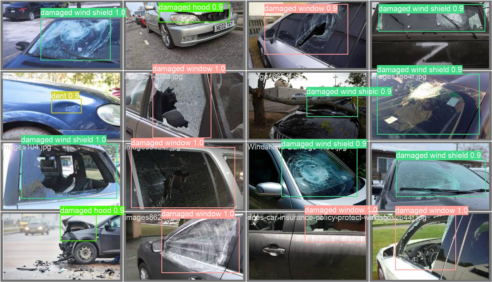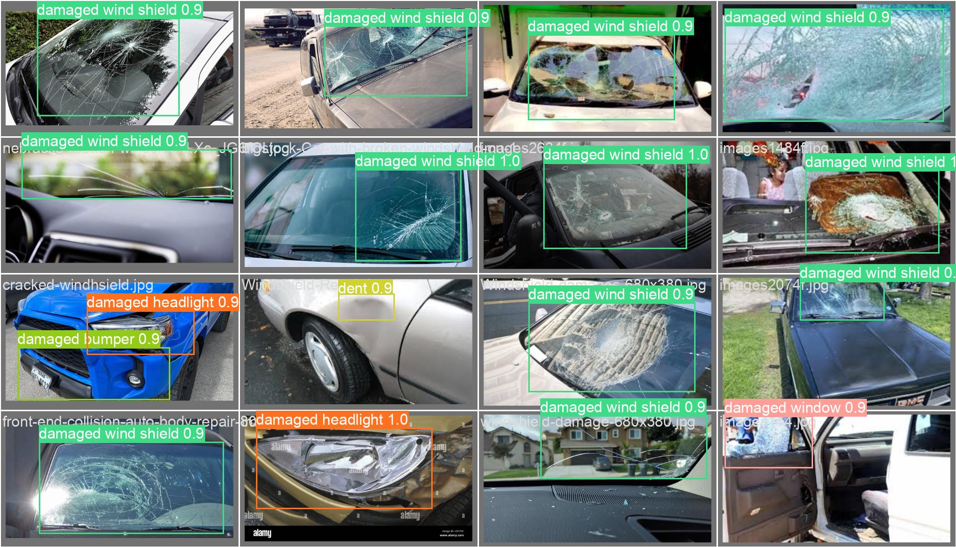 7: damaged wind shieldI have given the path to my train and val directory. In this case I have chosen the validation and train directory to be the same since it doesn't really matter while testing on the images used for training. Then I have listed the 8 labels that have been used in the project from 0 to 7. Make sure that the labels are numbered correctly according to the annotations.