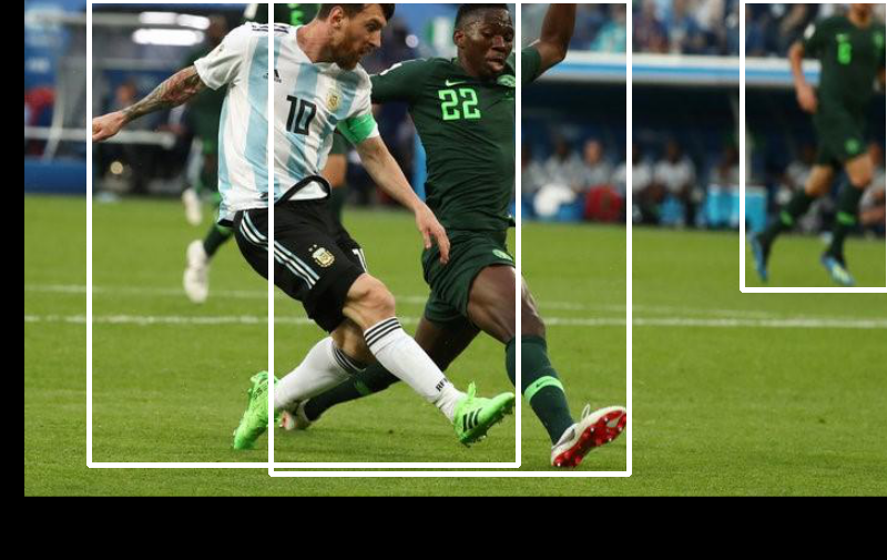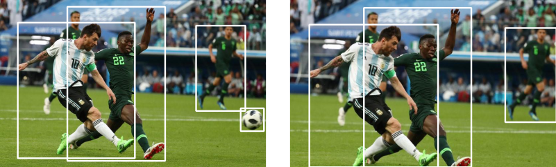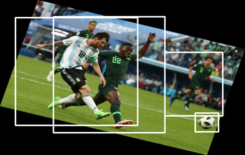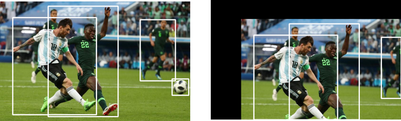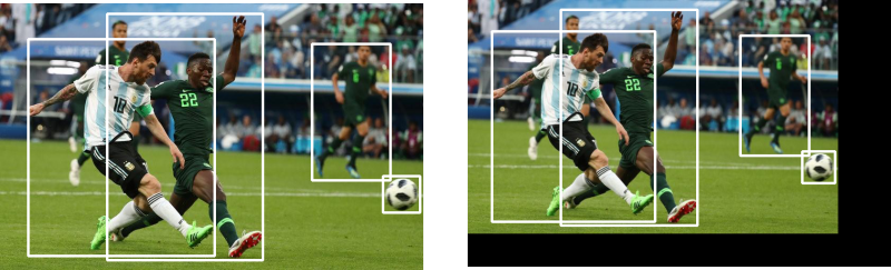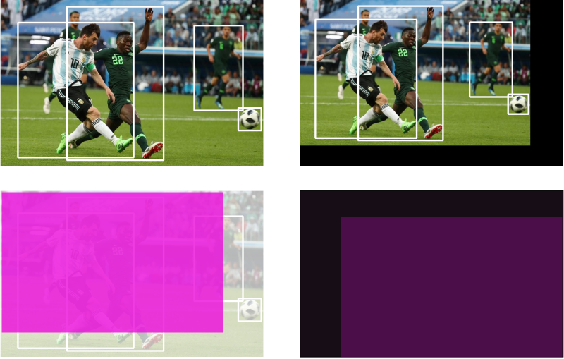 The only last thing which remains is the case an object is expelled from the image as a result of the scaling. For example, consider scaling up by a factor of 0.1 which means the final image dimensions are 1.1x the original image. This expels the football from our image.