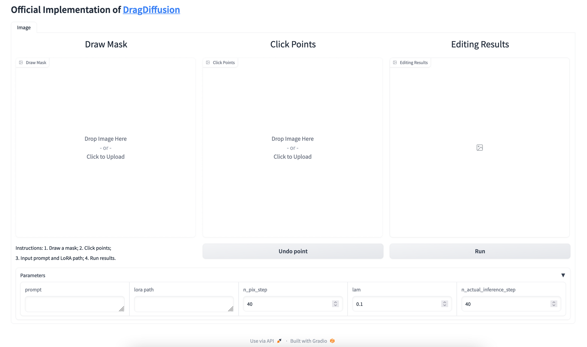 Now, we can go into the Gradio demo itself. There are 5 fields we will need to edit to recreate the effects of the sample image at the start of the demo section. These are namely the: