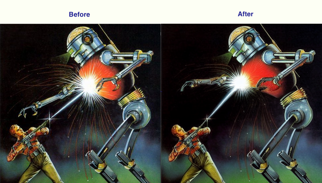 As we can see from the sample above, this process is not perfect. Improper assignment of the parameter values, poorly defined mask areas, and poor placement of the placement markers for the handle and target. Like any tool, this AI method still requires a degree of control and understanding to make best use of. In the demo section below, we will show how to make the intended edit: shifting the arm, laser, and explosion upwards.