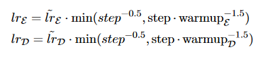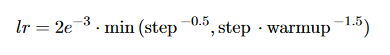 - They use two Adam optimizers with β1= 0.9 and β2= 0.999 for the encoder and the decoder, respectively, each with different warmup-steps and learning rates: