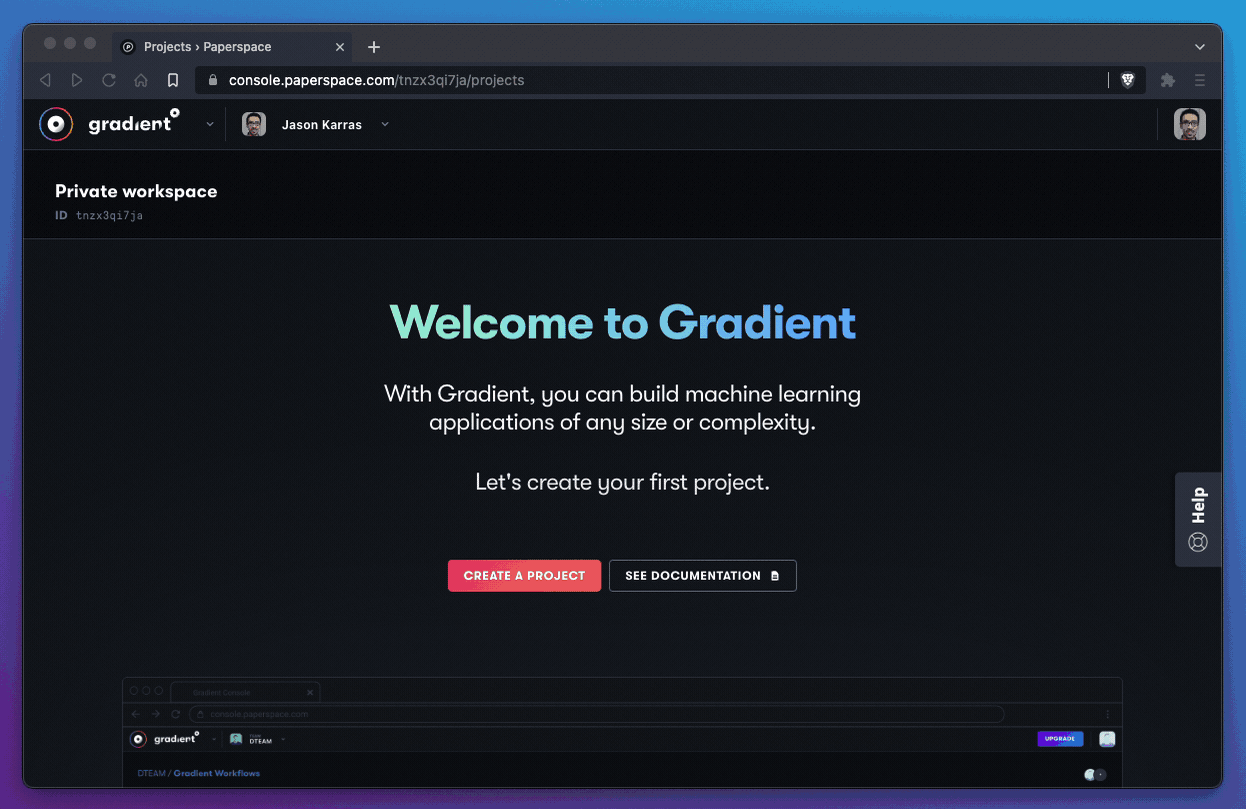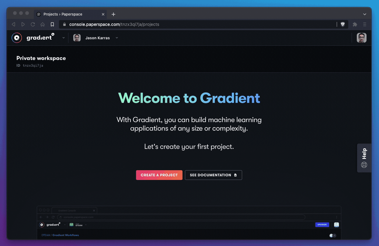 To start, all we need to do is select the Gradient product from within the Paperspace console.