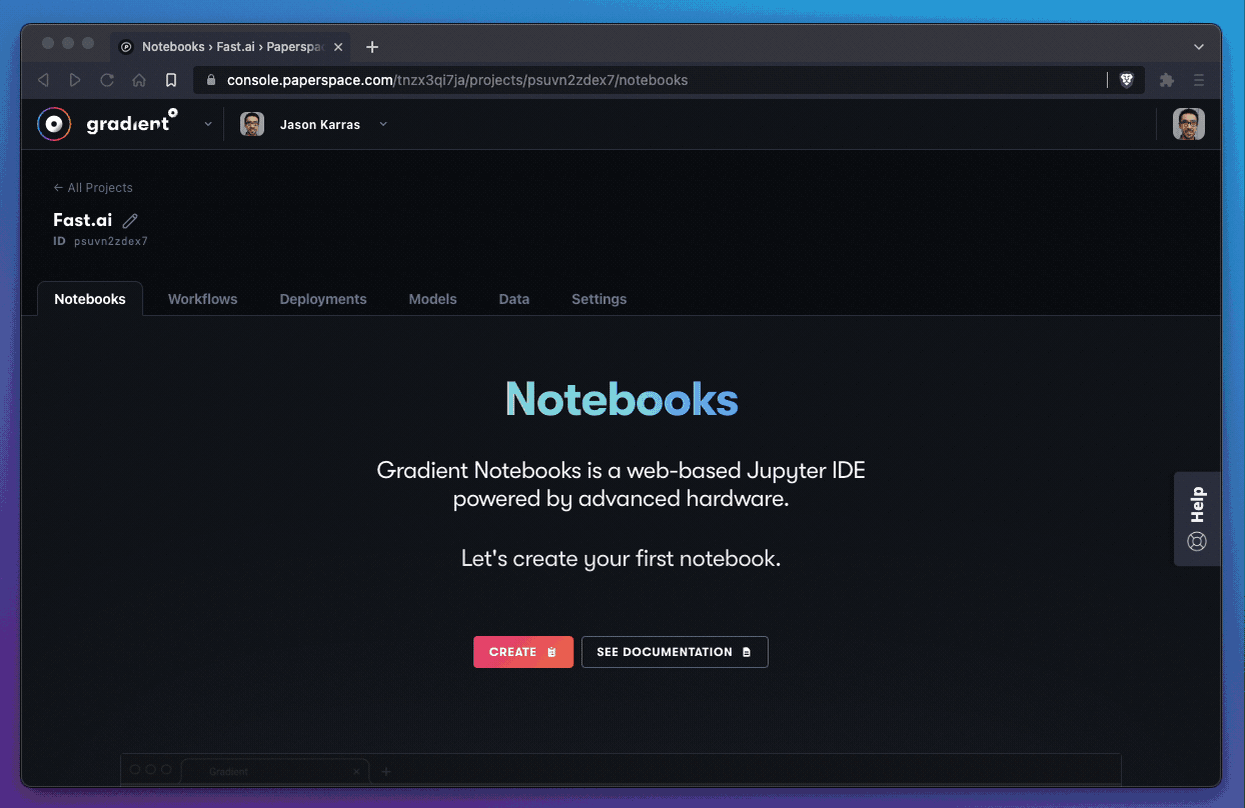 Next, we'll create a new Project, which we'll name Fast.ai, and then we'll create a new notebook.