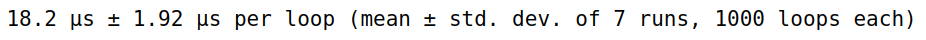 We see that thee optimized code runs in about 18.2 nanoseconds, which is about 20 times faster than the loop version!