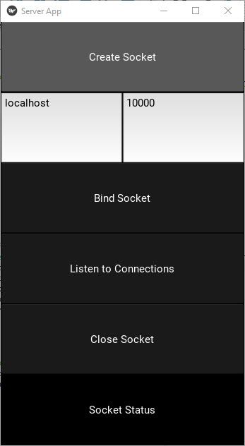 - Bind Socket: Binds the socket to the IPv4 address and the port numbers entered in the 2 text fields.