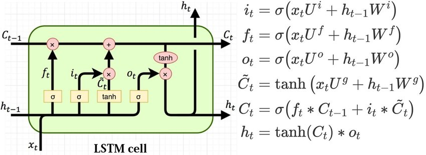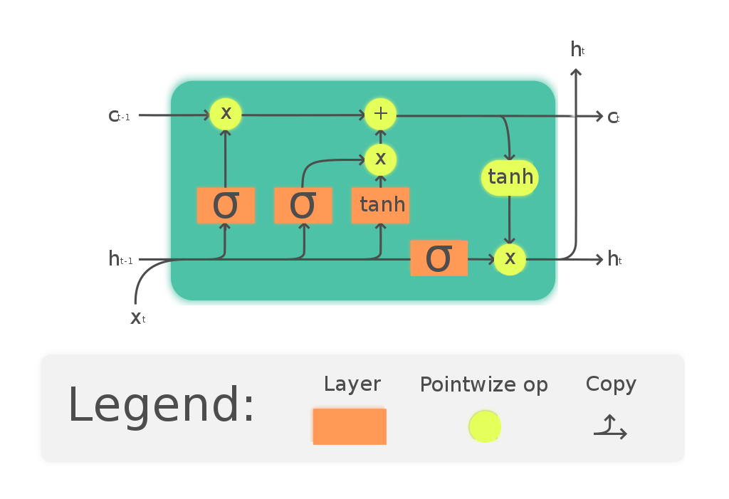 model.add(LSTM(100))The mathematical computations for LSTMs can be interpreted in many ways. The images shown below are two of the methods in which the mathematical calculations of LSTMs are carried out. Sometimes the bias function is ignored, as shown in the second image. However, we will not cover the intricate details of the first image. You can check out more on that representation from the link provided in the image source. The mathematical equations in consideration of the first LSTM image are pretty accurate for computation purposes.