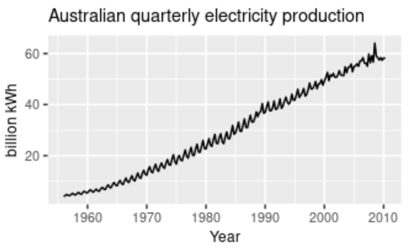 A Trend in time series forecasting is defined as a long period of time with a consistent increase or decrease in the data. There may be slight fluctuations in the data points and elements at various instances of time, but the overall variation and direction of change remain constant for a longer duration of time. When a Trend goes from a long duration of constant increase to a long duration of constant decrease, this is often referred to as a "Changing Direction" trend.