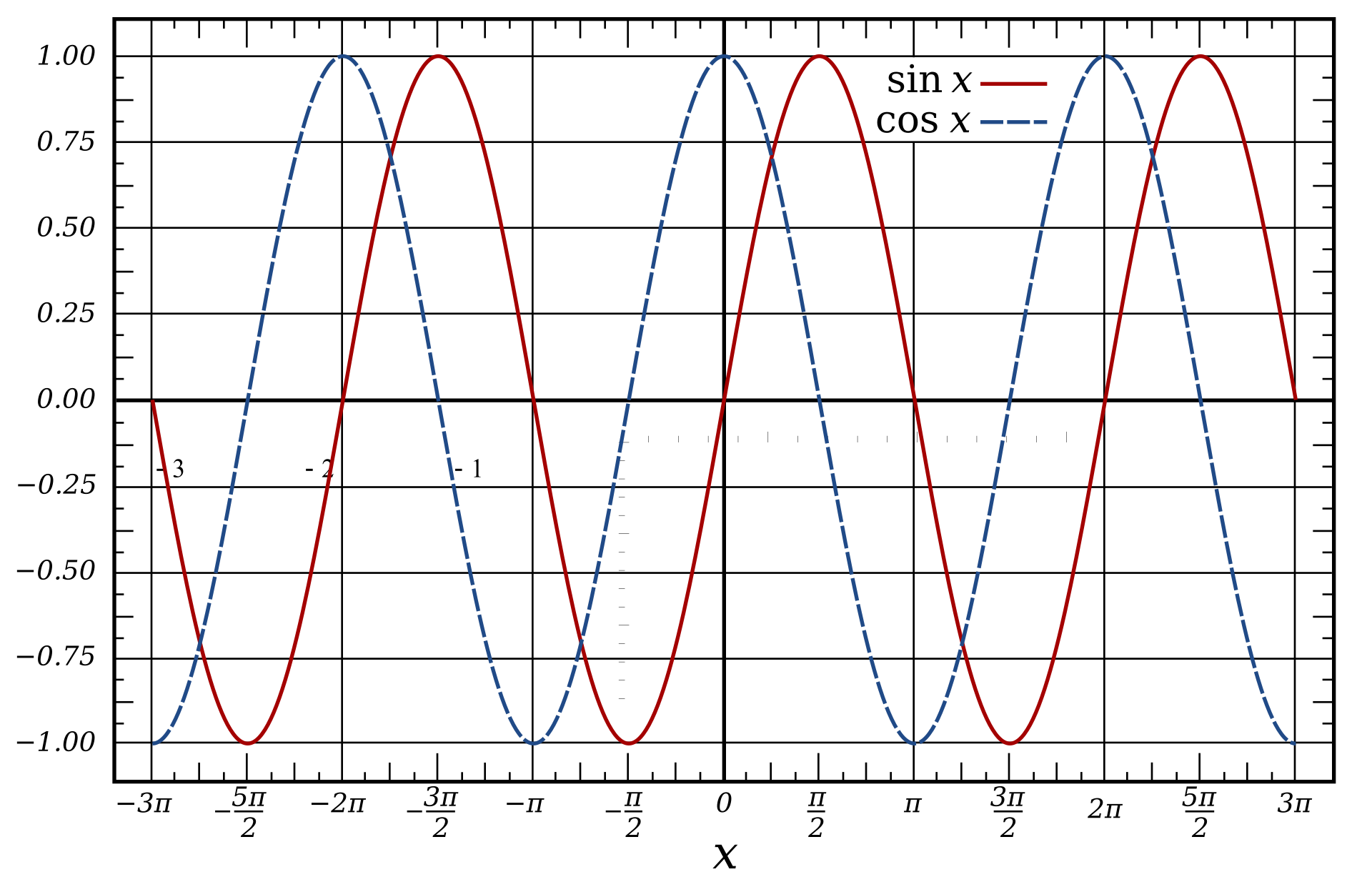 Similar to the previously discussed point, when there is a fixed function that has the required values for each desirable point of time, then the whole point of time series forecasting is nullified. When the time series analysis is in the form of a function, the mathematical calculation for this pattern could be done with a calculator. To consider some such examples, the above graph shows the representation of a sine and cosine wave. Any function of the form $Y(x) = X$ is simple enough to calculate, and we don't need deep learning to do so.