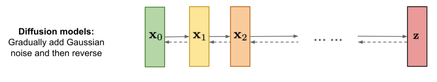It works in two stages: forward diffusion and backward diffusion. Given a data point from the real distribution of the sample, the forward diffusion process adds a small amount of noise to the sample for a predefined set of steps. As the steps get larger and approach infinity, the sample will lose all of its distinguishable features and the sequence will begin to mimic an isotropic gaussian curve. During the backward diffusion process, the diffusion model sequentially learns to reverse the effect of the added noise to the images, and guide the generated image towards its original form by trying to approximate the original input sample distribution. A perfected model would be able to do so from a true gaussian noise input and a prompt.