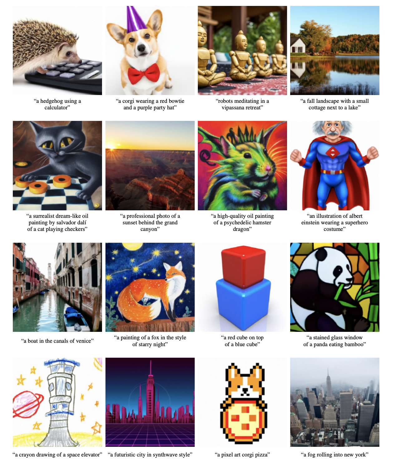The most popular and common use case for GLIDE will undoubtedly be its potential for image synthesis. While the images are small and GLIDE struggles with animal/human shapes, the potential for one shot image generation is near limitless. Not only can it generate images of animals, celebrities, landscapes, buildings and much more, but it can also do so in different art styles or photorealistically. As you can see from the samples above, the authors of the paper argue GLIDE is capable of understanding and adapting a wide variety of textual inputs into image format.