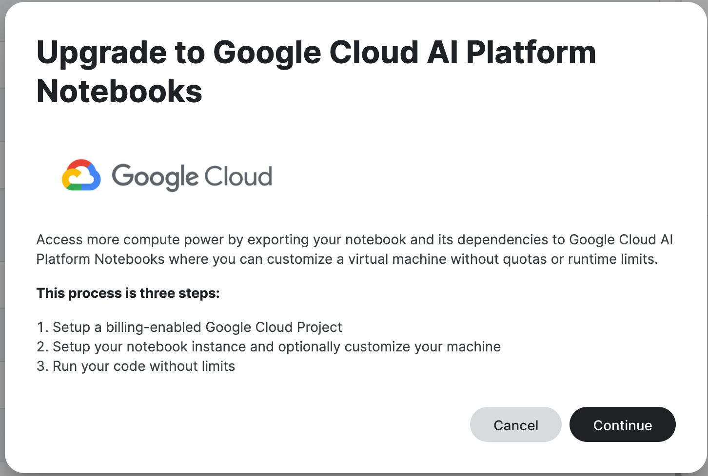 On the downside, AI Platform Notebooks requires a lot of setup time, requires GCP instances to fund notebooks, and has some confusing interface quirks that make it difficult to get up and running quickly – and even to accomplish some basic tasks.