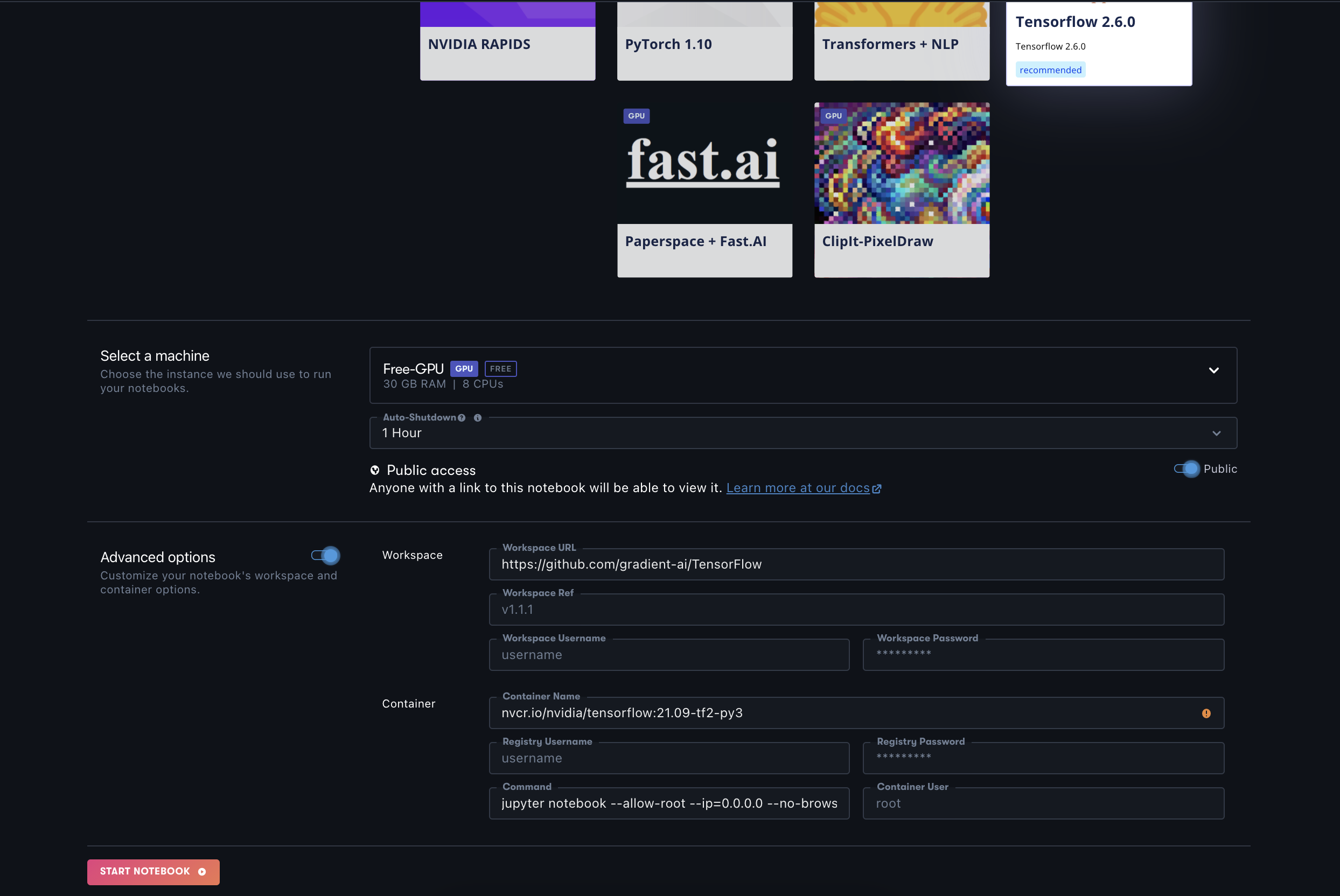First, log in to Paperspace Gradient and create a notebook. For your runtime, select TensorFlow.