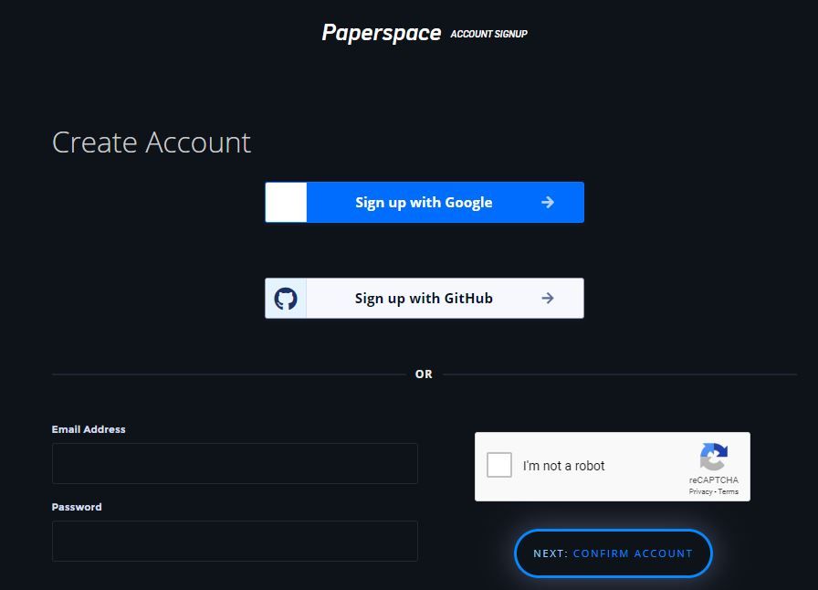 It's so simple to get started with Gradient. All you need to do is create a Paperspace account (you can do so here). You have three different options to sign up with:
