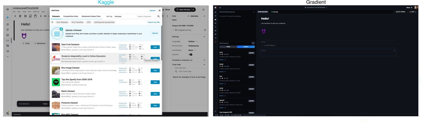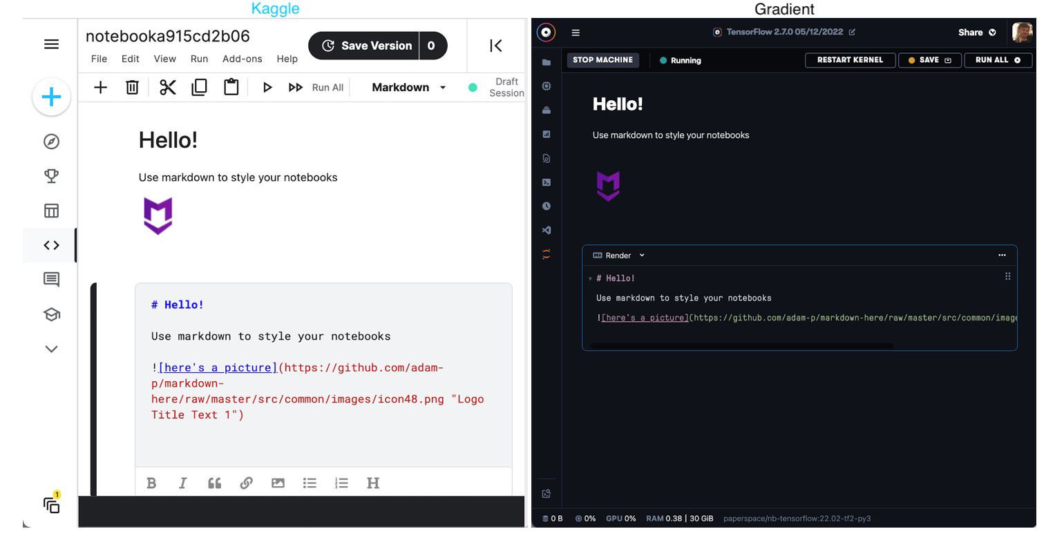 Contrasting Kaggle Notebooks and Gradient Notebooks