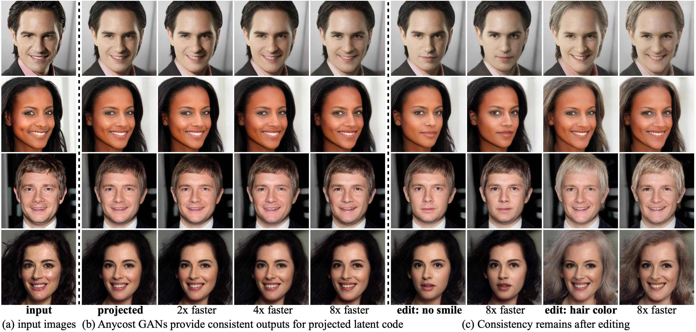 - Anycost-GAN: a GAN methodology for facial image editing that can be run on a wide variety of computation costs by modifying channel and reolution configuration settings.