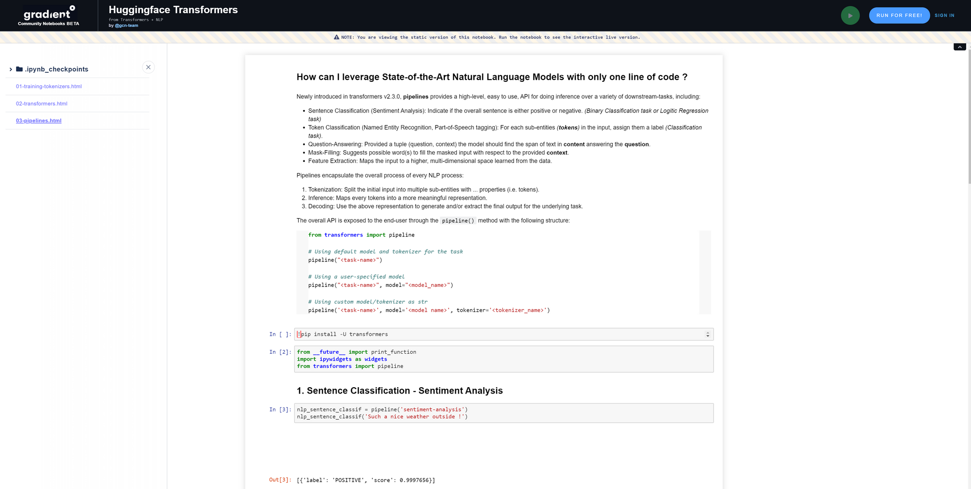 We're proud to provide advanced NLP tools (with minimal fuss) to the community. Over time we'll be expanding the offering by providing additional resources for Hugging Face and other industry-standard libraries on Gradient.