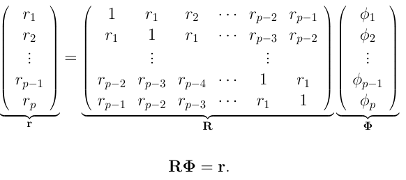 Here, $c(i)$ is the autocovariance value (which is divided by the zeroth value to get autocorrelation parameters $r(p)$).