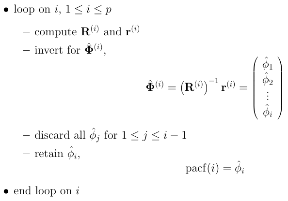 Another way of approaching the problem is provided by the Yule Walker Equations. An element of a time series is represented as a linear equation dependent on each of its previous elements until the maximum lag value.