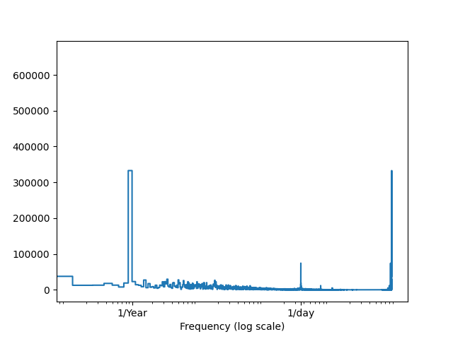 To validate these suspicions, we can look at the Fourier transforms of our series.