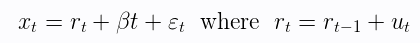 Where $r_t$ is a random walk, $\beta t$ is a deterministic trend, and $\epsilon_t$ is the stationary error.