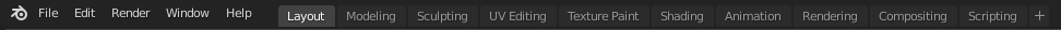 The first menu or the main menu bar shown in the below image contains some of the most basic functionalities which are useful for the development of 3-D models. The File option will occur with similar striking features to most users who have experience with any other type of development environments with the basic options of opening, saving, and other similar operations. The Edit window allows users to perform actions such as undo, redo, etc. The Render window will be used quite frequently for rendering the images, which is converting the objects from a 3-D figure to an image. The important function in Window is the toggle system console which allows you to debug your Python programs. The Help option provides users with access to some fantastic documentations. The other options will be explored as we proceed in these articles series.