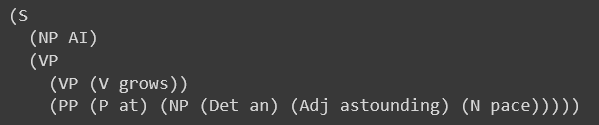 sentence = "AI grows at an astounding pace"