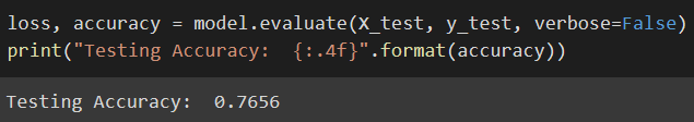 loss, accuracy = model.evaluate(X_test, y_test, verbose=False)