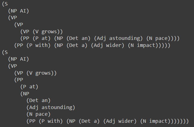 For more complex sentences, the parser will return more than a single tree: