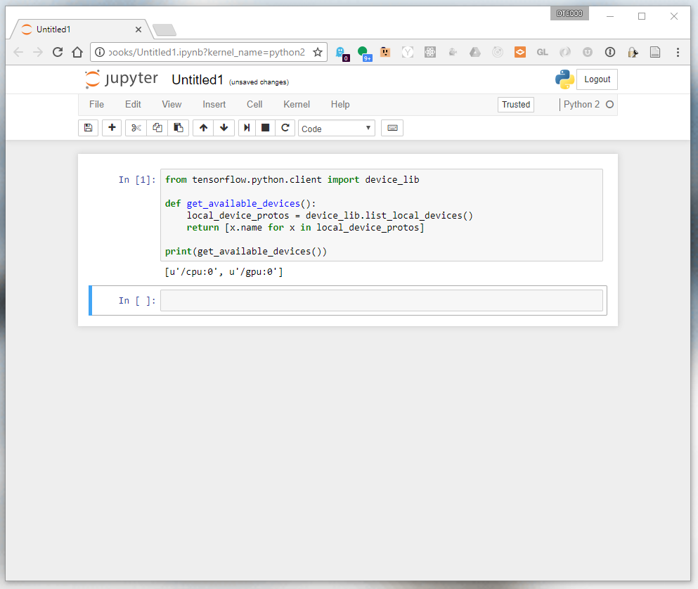sudo nvidia-docker run --rm --name tf-notebook -p 8888:8888 -p 6006:6006 gcr.io/tensorflow/tensorflow:latest-gpu jupyter notebook --allow-root