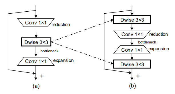 - Our study reveals that building shortcut connections along higher-dimensional feature space could promote model performance. Moreover, depthwise convolutions should be conducted in the high dimensional space for learning more expressive features and learning linear residuals is also crucial for bottleneck structure.