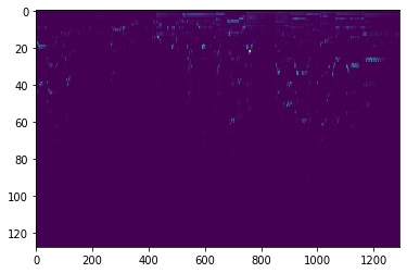 pyplot.imshow(melspectrogram, interpolation='nearest', aspect='auto')