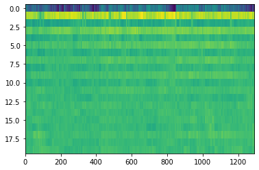 pyplot.imshow(mfcc, interpolation='nearest', aspect='auto')